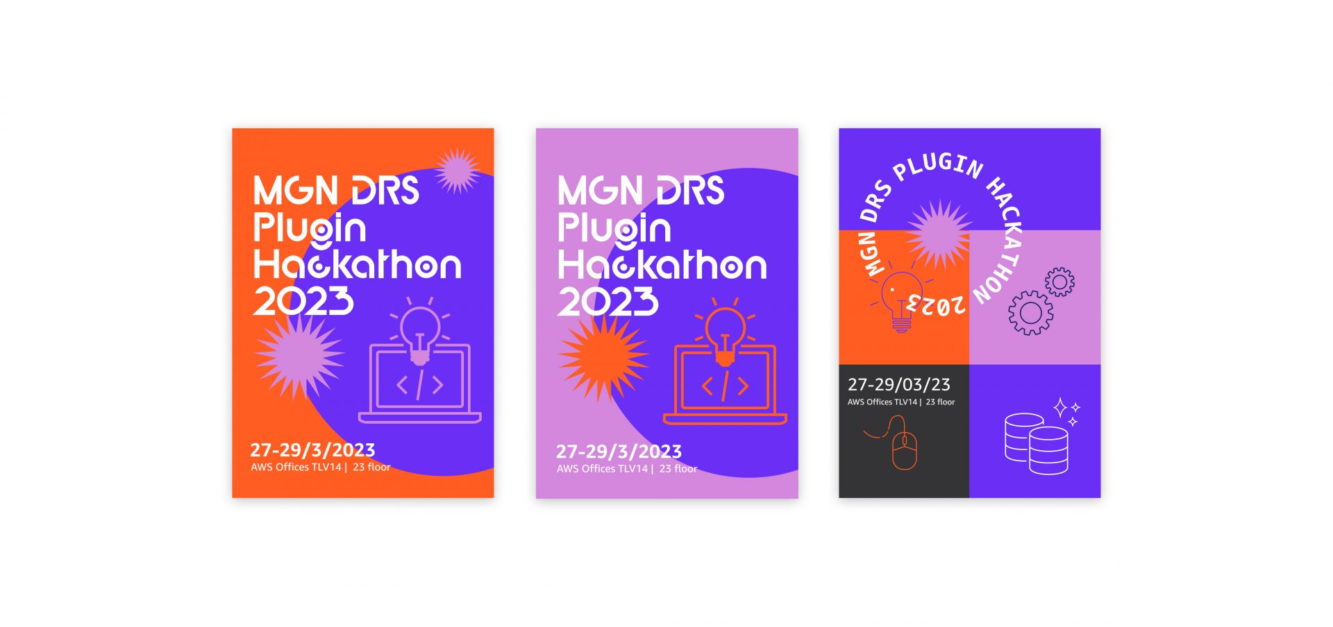 I led the design for the AWS MGN/DRS Plugin Hackathon, where my goal was to build a memorable brand experience from the ground up. I designed the event logo and all supporting materials, from engaging stickers to custom t-shirts. My work created a consistent and memorable brand experience for all participants.